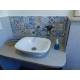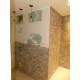 Leistung: "Klein aber fein" - kleines Gästebad im Dachgeschoss mit Akzenten aus Mustangschiefer; Bodenbelag auch aus Mustangschiefer