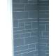 Großformatige Wand- und Bodenfliesen mit Schnittmosaik als Einlegestreifen im Wandbelag